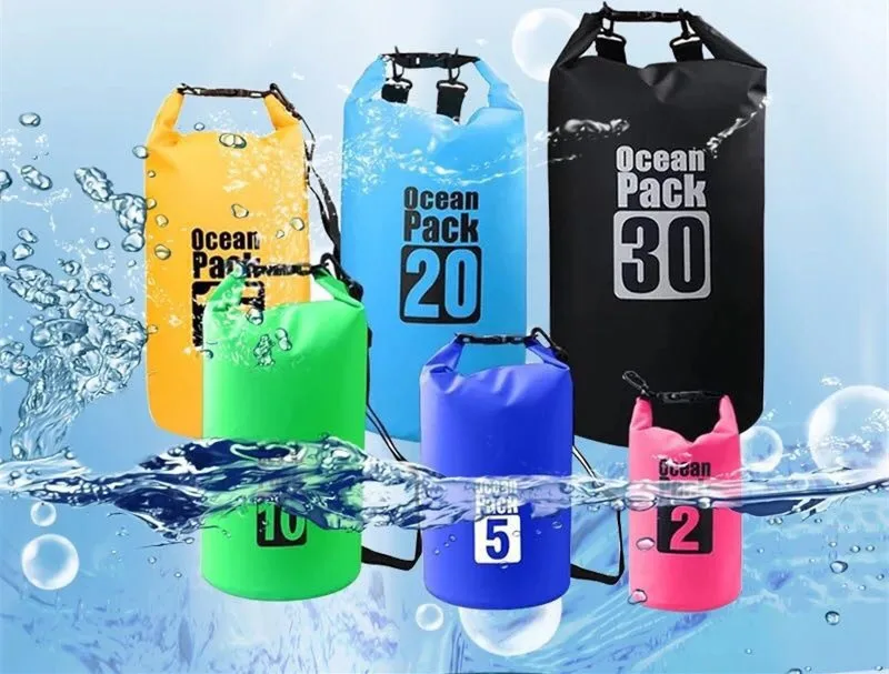Veleprodajne nepremočljive suhe vrečke za ribolov in plavanje. Trpežne 500D PVC & TPU suhe vreče z oceno IPX6/IPX7. OEM/ODM dobavitelj za blagovne znamke, distributerje in trgovce na prostem. MOQ 500 PCS, hiter čas svinca.